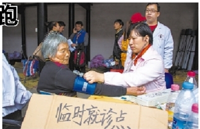 | 临时就诊点,医护人员24小时值班,为临时安置百姓提供救治服务。 |