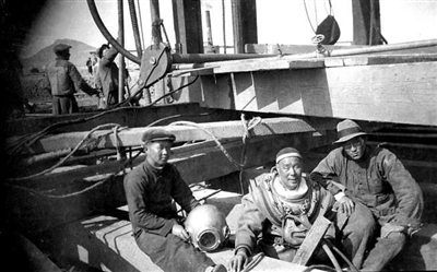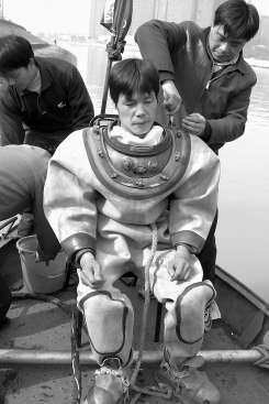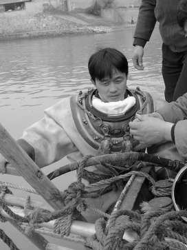每下潜10米,就会增加一个大气压。下潜至5米后,潜水服就会紧“裹”住潜水员,犹如穿了件“紧身衣”。因为当年没有专业加减压舱设备,潜水作业带有一定的危险性。