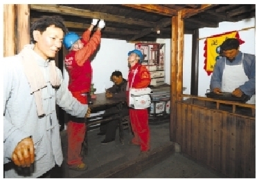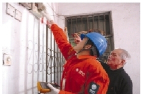 | “红色义工”在月河社区为冯传德老人排查线路 |