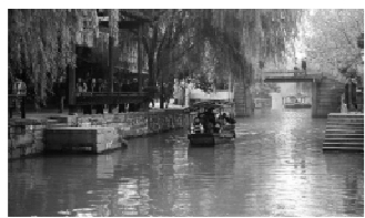 沿着景区入口向前,从现代的繁华步入清幽的古镇大约只有50米,大块瓷砖铺就的道路和青砖片石铺就的“古道”是古镇与城镇的接合点。走进古镇,首先映入眼帘的是黄得正酣的银杏叶,片片金黄的银杏叶或挂在枝头,或躺在地上。爬满藤蔓、长满青苔的古树,像一个个健硕的老者,凝视着岁月的变迁。屋顶黑瓦的缝隙上积满了落叶,天真的小草开着娇艳的小花,在微风中频频点头。河边一间茶馆,整齐地摆放着油漆斑驳的八仙桌和长条凳,古色古香的茶具、被装进木笼子的空调缓缓讲述着古镇的慢生活。