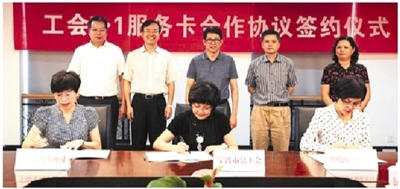 | 工会“5·1服务卡”三方四家合作方举行签约仪式 |