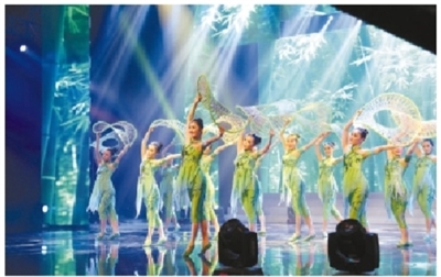 温州市职工文艺秀活动由温州市总工会主办,从2012年底开始筹划推出,经过3年开展,成功打造成具有温州特色的职工文化活动品牌,形成“职工编、职工演、职工看”的草根平台,成了职工们展风采、秀自信的欢乐舞台。共举办121个文艺秀专场,其中电视展示专场39个,参演职工3800多人,现场观看的职工达4万多人。图为文艺秀上翩翩起舞的一线职工。