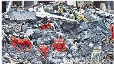 | 12月21日,救援人员在现场进行搜救。 |