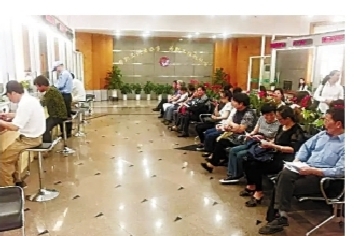 | 职工服务中心的大厅里,前来申领医疗互助保险的职工络绎不绝。 |