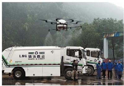 本报讯 记者周金友 通讯员金励摄影报道 昨天上午,杭州市环境集团为改善杭城空气质量,护航G20国际峰会,在天子岭循环经济产业园区,亮出了可以实施“精准打击”的无人机和LNG新能源清洁直运车。