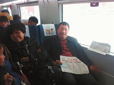 | 本报记者(右)在体验金丽温高铁之旅。 |