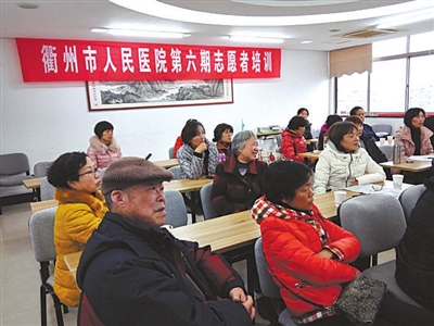 2015年12月25日,衢州市人民医院爱心服务中心在门诊十楼示教室开展第六期志愿者培训——医院消防安全知识讲座。40余名志愿者参加了培训。
