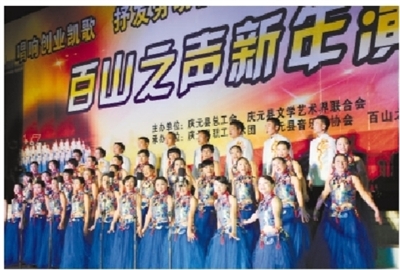 由丽水市庆元县总工会、庆元县文学艺术界联合会主办,庆元县职工艺术团、庆元县音乐家协会、“百山之声”合唱团承办的“唱响创业凯歌、抒发劳动情怀”——“百山之声”新年演唱会近日在庆元市民广场举行。