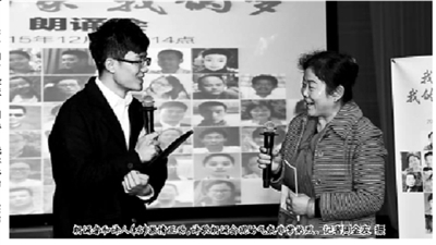 | 朗诵者和诗人(右)激情互动,诗歌朗诵会现场气氛非常热烈。记者周金友 摄 |