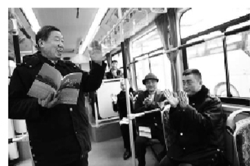 | 在本次大赛中获得一等奖的杭州滨江区177路公交车司机郭祥勤师傅为工友们朗诵诗歌。通讯员王建中 摄 |