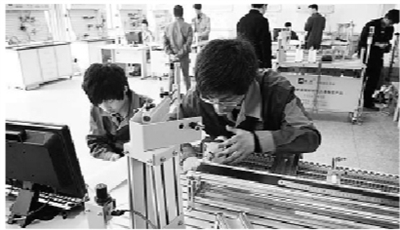 | 学生在实训基地开展机电一体化实训 |