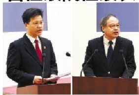 | 陈国猛(左)和汪瀚(右),在会议上发言。 记者周金友 摄 |