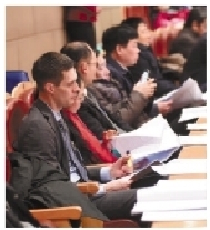| 前来听会的美国驻上海总领事馆官员。记者周金友 摄 |