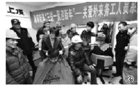 图② 1月27日,绍兴市柯桥区总工会组织开展慰问一线职工活动,为建设在工地的一线职工送去了新春祝福。在浙江树人大学杨汛桥校区建设现场,柯桥区总工会主席喻光耀向坚守在岗位的一线工人送上年货,并叮嘱工地负责人一定要安排好节日期间工人的生活。