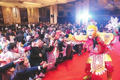 为满足客户黄金投资、收藏需求,近期,中行浙江省分行在全辖各地举办2016年“灵猴献瑞 共襄盛举”贵金属品鉴会,展出销售“会说话”美猴王贺岁金钞、猴年生肖纪念币、火猴迎新邮票等特色贵金属产品,受到客户追捧。现场“美猴王派礼”(如图)、“写春联”等环节更是为活动增添了浓浓的年味。尹劲劲