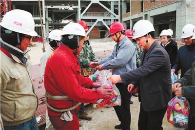 元旦期间,浙江省全体援疆干部在省援疆指挥部指挥长、党委书记徐纪平的带领下,到浙江能源集团阿克苏热电有限公司参观调研。我省总工会援疆干部杨宝明了解到,今年春节期间将有100多名浙籍骨干职工和当地民工坚守岗位,立刻向地区工会领导报告。地区工会领导十分重视,于是有了这次的慰问活动。