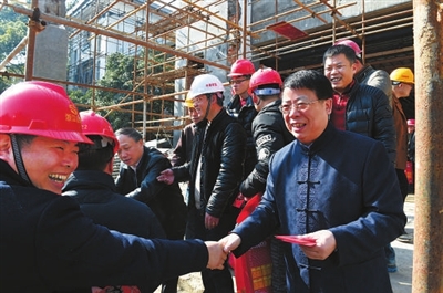 戴震华代表省总工会向春节加班的建设者祝贺新春