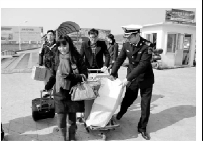 | 三江码头,海事人员帮助乘客。 华志波 摄 |