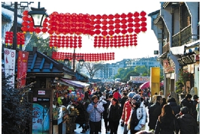 过完春节又迎元宵。昨天,杭州河坊街上高高挂起的红灯笼,洋溢起浓厚的元宵欢乐气氛。据悉,今年元宵节,虽然杭州城区少有大型灯会,但在街道、社区,都将会有各种不同特色的元宵彩灯和庆祝活动,大家在家门口就能高高兴兴地欢度元宵节。