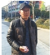 | 老韦手拿朱阿姨送的钱,感谢帮助他的好心人。胡翀 摄 |