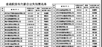 本报讯 记者吴晓静报道 在省政府新闻办昨天召开的新闻发布会上,省高院通报了全省法院执行失信黑名单制度的相关情况,并发布了欠薪企业黑名单。