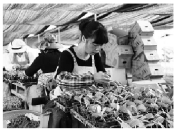 走出绿意西瓜苗嫁接育苗场的大棚,耳畔又传来了嫁接女工们开心的笑声。