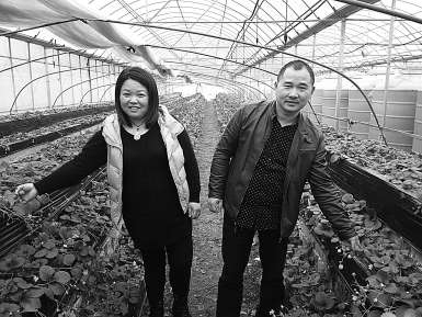 | 寿忠平、李赛娥夫妻俩在草莓园里。 |