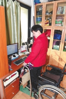 | 为了防止关节坏死,她每天都要依靠阿姨的帮助和特制的架子支撑,一手握住房顶上挂下的绳带,顽强地“站”起来,坚持锻炼。 记者周金友 摄 |