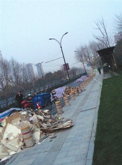 保俶北路的文三路到天目山路段,尽管道路两边都还没整治完毕,但记者没看到工人在上夜班。清晨5时许,在该路段的保俶北路12号对面,记者看到了第一堆渣土。