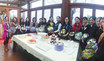 3月8日,虽然没有灿烂的阳光,但中国电信浙江公司的女员工们个个笑容洋溢,公司工会组织的插花比赛,让大家在这样一个专属的节日里不仅得到了艺术培训,也收获了一份自己亲手制作的插花作品。刘兰 摄