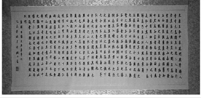 二是规矩中显出灵气。许钢明先生的小楷书法,十分讲究笔画的力度、结字的严谨、通篇的行气以及给人的美感;但同时,他又师古而不泥古,善于用自己抽象化的哲学理念去幻化形象化的艺术载体,在楷法中渗入了行草法和篆隶法,从而使作品面貌多变,充满活生生的朝气和阳光。