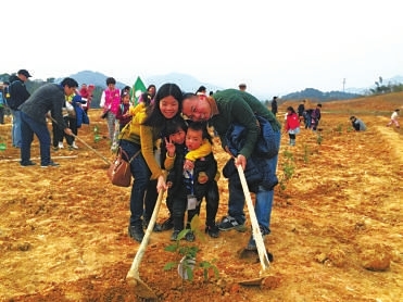 在长乐林场专门设立的“金诚成长林”植树区块,近40组小朋友和爸爸妈妈拿着铁锹、锄头,齐心协力地将一棵棵树苗放入土坑、调整方向、盖上浮土、踩紧、浇水,经过1个多小时的共同努力,百余棵小树迎风摇曳。而小朋友在活动中留下了“许愿瓶”,把2016年的愿望放进瓶里埋在土里,陪伴小树苗共同成长。