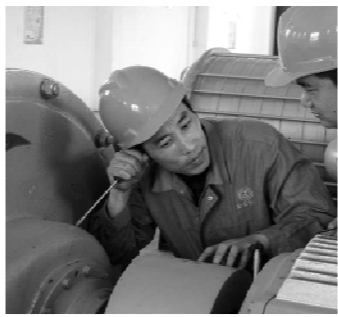 | 这样听一听,倪志伟(左)就能找到设备故障在哪儿。 |