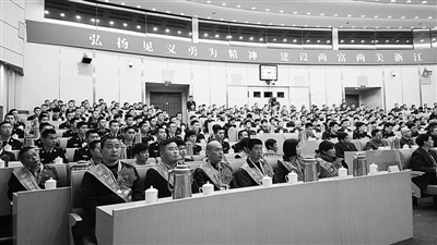 3月21日下午,艳阳高照,春光明媚,春风拂面,记者怀着崇敬的心情,走进省人民大会堂,参加全省见义勇为先进人物表彰暨见义勇为工作电视电话会议,十分荣幸地见到了受省政府表彰的2015年度见义勇为先进人物或其家属(详见本报昨日1版报道)。