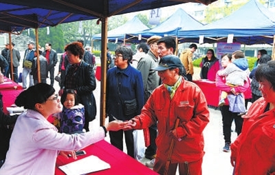 昨天上午,在杭州太庙广场举办的一场招聘会上,一位从山东农村来杭州做清扫工多年的大姐,被附近一家酒店招聘清洁工的岗位吸引住了。大姐说,这家酒店管住、管吃,工资待遇也行,要不俺也跳个槽?在得到鼓励后,乐呵呵地留下了联系电话。“家”门口举办的招聘会,在为广大外来务工人员提供更多选择的同时,必将促进当地企业进一步关爱员工,提升待遇,用实际行动留住人。记者周金友 摄影报道