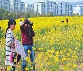 昨天上午,通往杭州半山公墓的路上满是前来扫墓的车辆。公墓一位工作人员称,今年清明节的扫墓高峰来得有点早,公墓所有停车场爆满。许多人提着鲜花,带着思念,早早地前来缅怀已故亲人(上图)。踏青,是清明时节的又一道风景。杭州良渚文化村一大片金黄色的油菜花(下图),引得游人流连忘返,放眼望去,一派迷人春色。