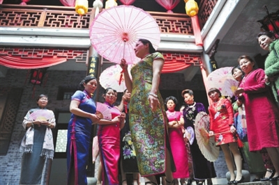 3月26日,临安市河桥古镇举办旗袍秀活动,50多名旗袍爱好者身穿各色旗袍集体亮相,展示中国传统服饰的独特魅力。