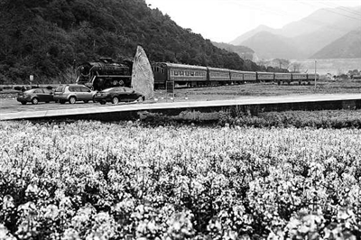 漫步乡村小路,微翘的檐角,镂空的窗棂,精美的木门,吸引无数游人想轻扣门扉,倾听一段南洞往事;走过一座石桥,清澈的溪流,穿村而过,大片的油菜花竞相绽放,铺散在村落的田野阡陌上。一列来自嘉峪关的“退役”老式绿皮火车,静静地躺在黄灿灿的油菜花丛中,或许她正在回忆曾经满载乘客时,热闹欢腾的过往。如今,粉刷一新的绿皮火车,改头换面,出门迎客,车厢里已经开满了各式精致的小店:餐厅、烧烤、咖啡吧、工艺品店……一个崭新的火车广场,正汇聚人气,吸引着众多游人和拍客慕名前来。