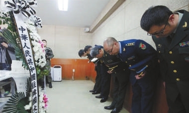 | 3月28日,在韩国京畿道坡州市,中国驻韩国国防武官杜农一(右三)等中方代表举行悼念活动。 |