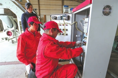 3月中旬,随着气温回暖,春茶又开始抽芽,德清莫干山一带的茶农们也开始了一年最忙碌的季节,电网即将迎来一波春茶炒制用电高峰。据悉,德清产茶以“莫干黄牙”最为著名,近年来,莫干黄牙随着莫干山也火了起来,茶场茶农数量连年陡增,成了当地农民致富的一条重要途径。而茶叶制作中杀青、揉捻、解块、烘干等工序,设备耗电量大,对供电可靠性要求高。为此,国网德清县供电公司不断优化电网布局,提升服务水平,助力当地茶业发展。图为电力青年志愿者来到当地双丰茶厂提供上门用电服务。宋贤良