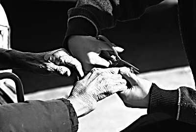 | 李从撑给父亲按摩手指,剪指甲。 |