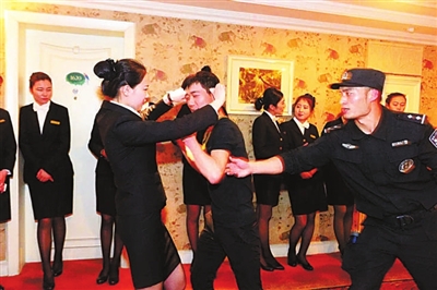 近日,杭州第一世界大酒店邀请萧山特警为酒店女员工进行“防狼”训练,传授女员工踢腿、搏击、近身格斗、求救等“防狼”绝技。警方提醒,女性加强自身的保护意识并提高自身防范技能,可以降低遭受性骚扰的几率,减少伤害。