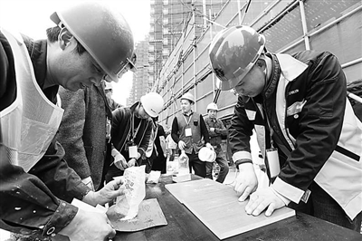 日前,宁波江东区总工会举办了一场“装饰工匠”技能大赛,22个企业代表队,42名选手参赛。比赛分瓷砖镶贴和油漆修补两个项目。各路选手经过一个多小时的激烈比拼,现场的专家评委会根据现行国家装修规范和标准实测打分,最终来自浙江元和装饰股份有限公司的李子军和来自南豪装饰的何邦玲分别获得瓷砖镶贴和油漆修补的项目冠军,同时这两名“行业状元”也将被授予“宁波市技术能手”的荣誉。通讯员翁晓东 摄