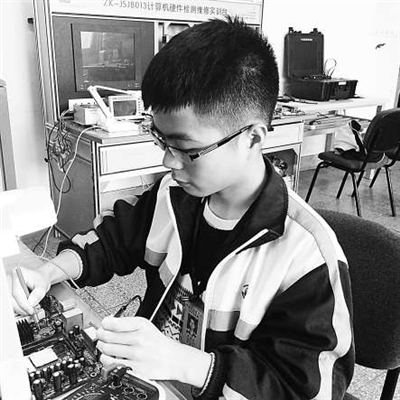 林旭东是绍兴柯桥区职教中心13电子班学生。其实,在上这个学校之前,他对电子电路一窍不通。正所谓兴趣是最好的老师,学校实训室及先进的设施设备和“教学做一体”的教学方式激发了他浓厚的学习兴趣。在“学中做”、“做中学”,使原本对电子电路一窍不通的他开始痴迷其中、乐此不疲。