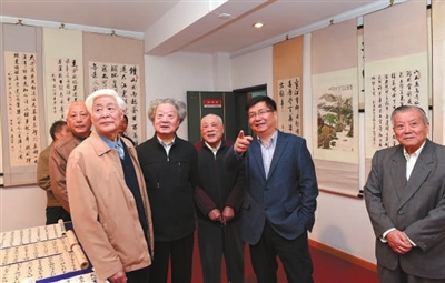 本报讯 记者周金友摄影报道 昨天上午,省总工会退休干部潘政个人书画展,在省总老干部活动中心开展。省总工会副主席董建伟出席开展仪式并代表省总工会热烈祝贺。著名书法家吕国璋先生为潘政书画展题写展名并出席仪式。省总工会老领导傅永珍、胡永吉及机关老年文体协会理事、书画小组成员出席仪式。省总工会老干部处处长李杭惠主持开展仪式。