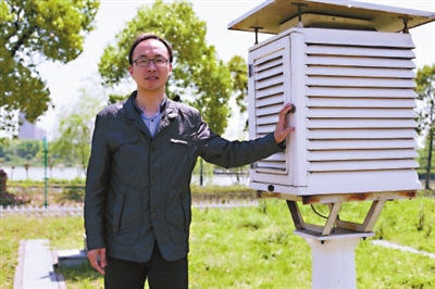 | 陈峰云在湖州市气象局观测场。见习记者何悦 摄 |