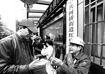 “五一”国际劳动节来临之际,绍兴市柯桥区总工会启动了“劳模在身边”活动,组织各种行业劳模进村入企,为职工群众提供医疗、金融、电力、水务、工艺制作等志愿技术服务。图为绍兴市劳动模范、中国轻纺城管道燃气有限公司管网运行部经理叶珠云在柯桥街道红建社区为居民讲解燃气管道的安全使用方法。