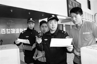 台州市路桥公安分局会同有关部门严加对寄递行业的规范管理,要求寄递行业必须严格落实实名登记、开箱验视等的规范和要求。日前,该分局路南派出所民警正在一家寄递公司督查实名登记等的落实情况。