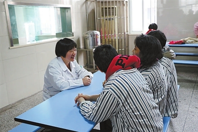 除了进病房要绷紧神经,时刻保持高度警惕,防范患者的谩骂攻击外,金玲珠面对生活不能自理的患者们,要为她们洗澡,替她们检查身体、理发、剪指甲、喂饭喂药,甚至处理经期卫生等。“她们不仅是病人,更是亲人”,她说,“精神病患者是特殊群体,更需要我们的关爱和尊重。”