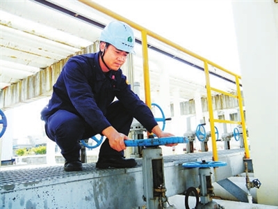 | 黄耀棉正在进行油品调和操作。 毛武瑛 摄 |